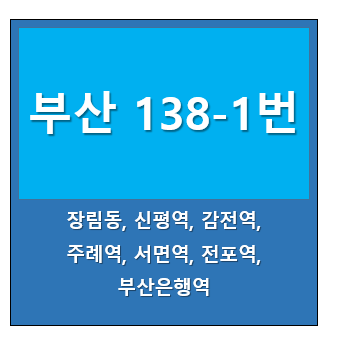 부산광역시 138-1번 버스는 장림동 - 사하경찰서 - 신평역 - 괘법르네시떼역 - 사상역 - 감전역 - 서면역 - 전ㅍ포역 - 용당동 신선대 충전소로 가는 버스노선 입니다.
