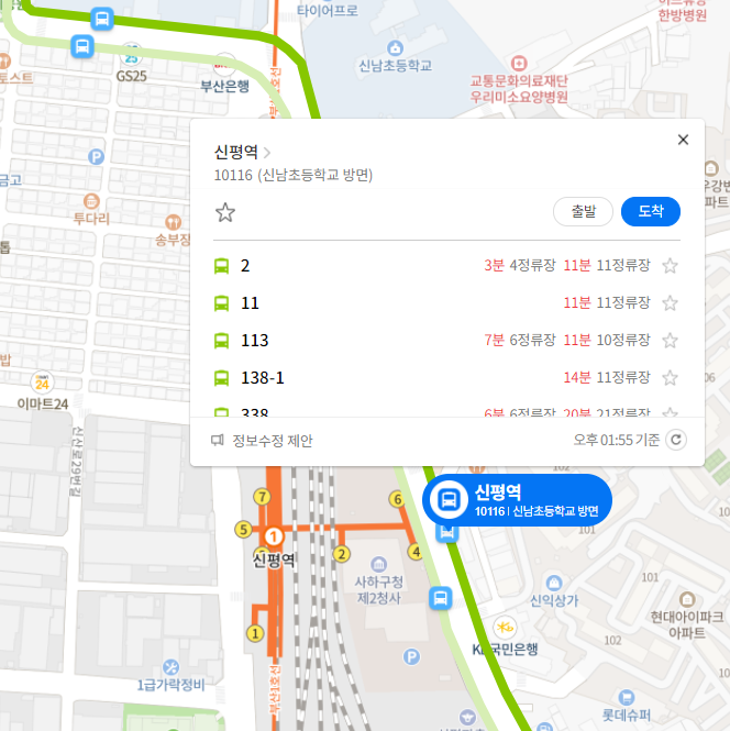 | 143 | 신평시장 | 07:22 | 00:55 |