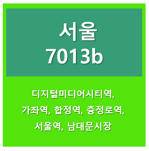 서울특별시 지선 7013b번 버스는 은평공영차고지를 출발하여 디지털미디어시티역, 합정역, 신수중, 마포역, 공덕역을 경유하고 서울역, 회현역으로 가는 노선입니다.