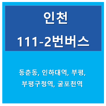 인천광역시 111-2번 버스는 동춘동을 출발하여 나사렛국제병원, 인하대역, 인천터미널, 부평삼거리역, 부평역을 경유하고 굴포천역을 운행하는 버스입니다.
