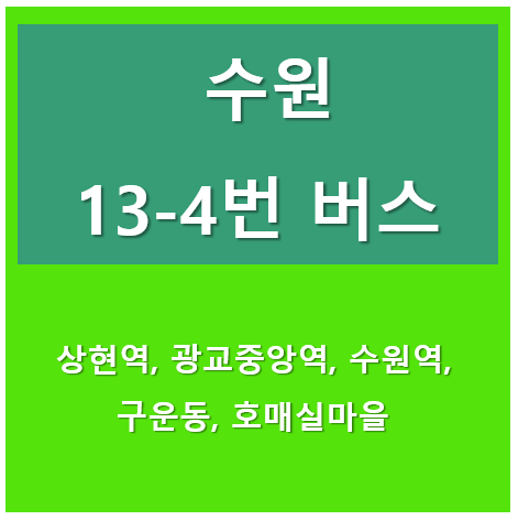 수원시 13-4번 일반버스는 수원시 영통구 하동을 출발하여 권선구 호매실동으로 운행하는 버스노선 입니다. 상현역, 광교중앙역, 수원역, 구운동을 경유합니다. 참고하세요.