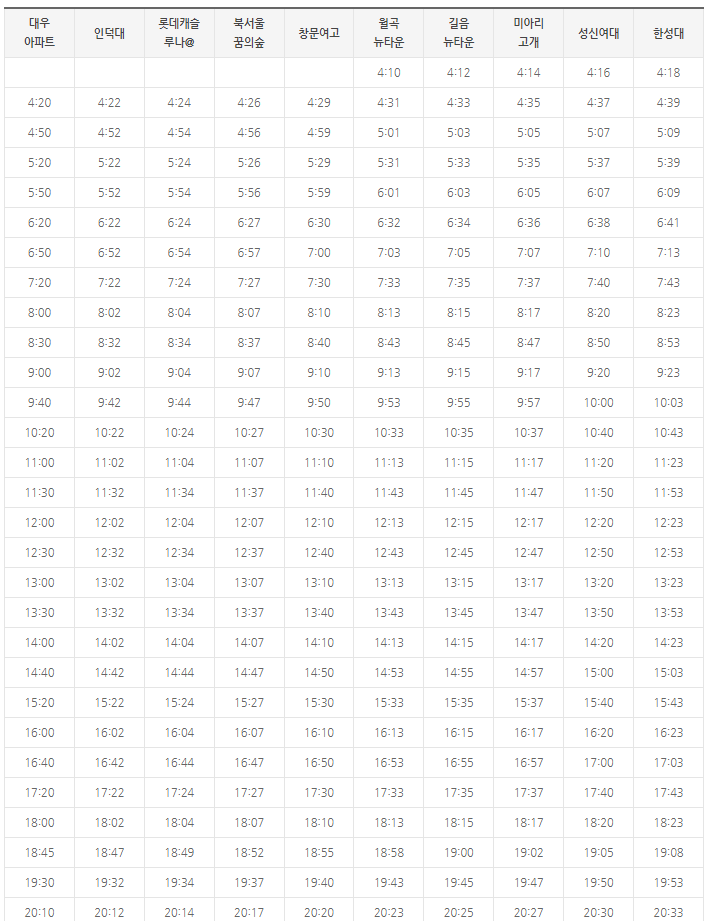 * 공개된 시간표는 없습니다. 아래 실시간 위치 참고 하세요 !