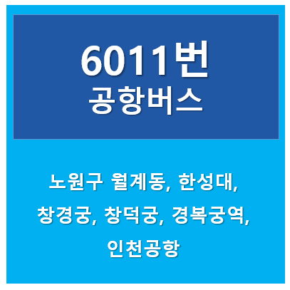 공항버스 6011번은 월계동, 북서울꿈의숲, 한성대학교, 창덕궁, 창경궁, 경복궁역, 인천국제공항을 정차합니다.