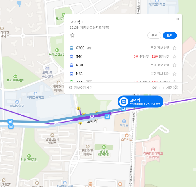* 공개된 시간표는 없습니다. 아래 실시간 위치 참고 하세요 !